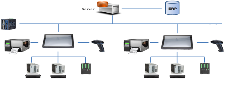 MES下層SCADA數(shù)據(jù)采集與監(jiān)控控制系統(tǒng),SCADA可以連接PLC,傳感器、RFID讀寫(xiě)器、 條碼掃描槍、條碼打印等。