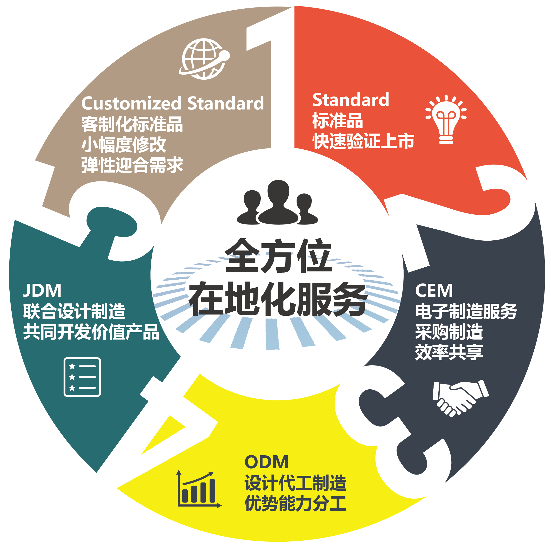 CEM(Contract Electronics Manufacturer):即電子制造服務(wù),我們可以為客戶提供一整套的服務(wù)方案,不僅包括生產(chǎn)與制造電子產(chǎn)品,還為客戶提供產(chǎn)品運(yùn)輸、物料選擇、系統(tǒng)組裝、維修等一系列服務(wù)。同時(shí)也會(huì)尊重客戶知識(shí)產(chǎn)權(quán),保證客戶產(chǎn)品品質(zhì)第一。